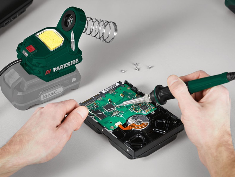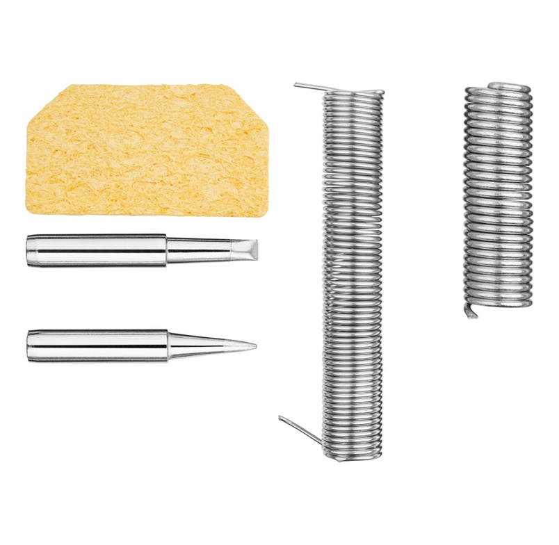 Mellékelt tartozékok: 1 forrasztóhegy (1 előre összeszerelt), 1 véső alakú hegy, 2 tekercs elektronikus forrasztóanyag (ólommentes) egyenként 10 g (vastagság 1,5 mm/1,0 mm), 1 forrasztószivacs