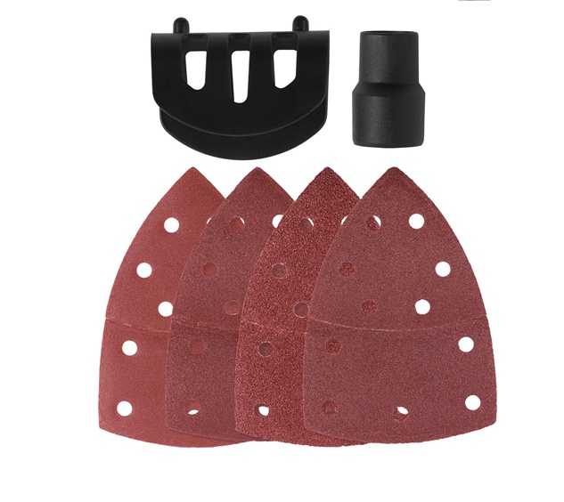 Mellékelt tartozékok: 1 adapter külső porelszíváshoz, 4 csiszolólap (szemcse 60/80/120/240), 1 csiszolópapír tartó