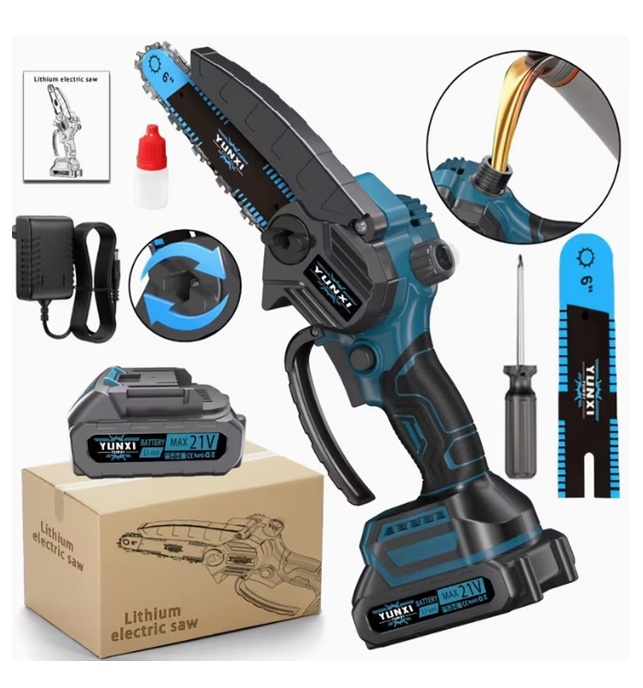 Fedezze fel a Yunxi vezeték nélküli elektromos láncfűrészt! Ez az ergonomikus, multifunkcionális eszköz  újratölthető lítium akkumulátorral és töltővel is rendelkezik. Ideális ágak, kisebb fák vágásához, faágak metszéséhez, udvari és otthoni kertészkedéshez. Könnyű és hordozható, hogy bárhová magával vihesse. Próbáljq ki most most és tegye könnyebbé a kertészkedést!
