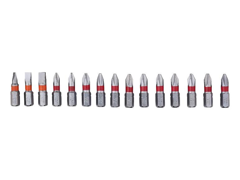 - 60 csavarozó bit: 49 db rövid bit (25 mm) + 11 db hosszú bit (50 mm) – különböző típusok (PH, PZ, TX, SL, HEX)