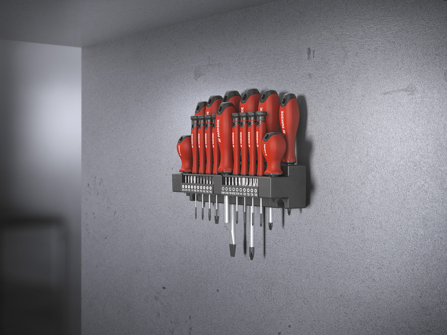 PARKSIDE bit és csavarhúzó készlet 37 részes készlet fali tartóval – 37PIECESET