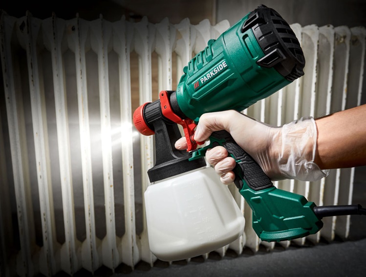 Mennyiség vezérelt szórópisztoly beépített 450 W-os ventilátorral