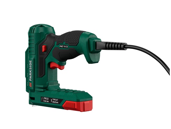Mellékelt tartozékok: 400 db 10 mm-es tűzőkapocs, 100 db 14 mm-es szög