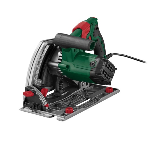 - Mellékelt tartozékok: 1 univerzális fűrészlap Ø 165 mm 24 foggal (előre szerelt), 2 részes vezetősín összekötő elemmel, 2 szerelőkulcs, 1 porszívó adapter, 1 csavarbilincs