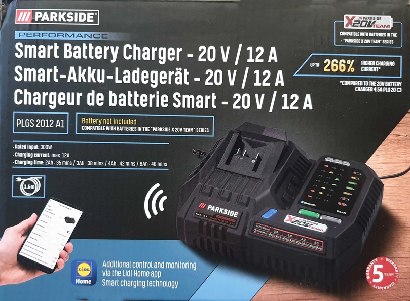 ParkSide Performance 20V, 300W Bluetooth Smart akkutöltő, akkumulátor extra gyors töltő