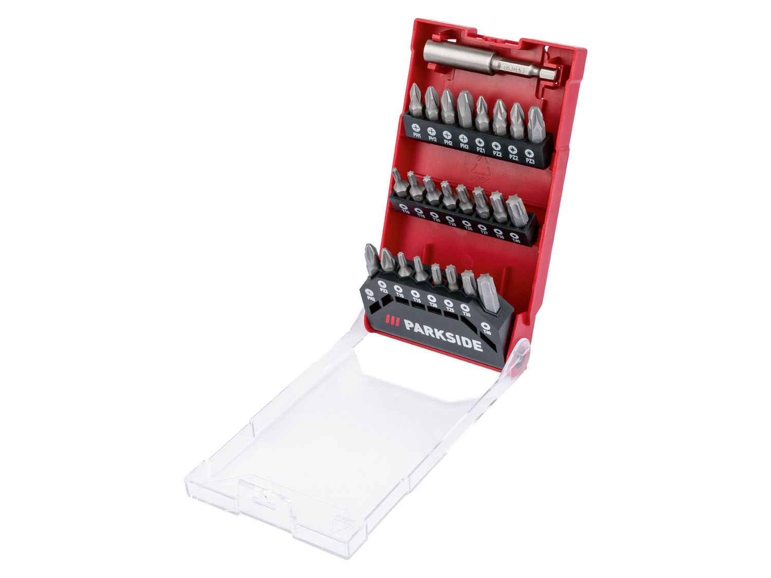 Tartozékok: 7 db fémfúró, 7 db fafúró, 25 db-os bitkészlet