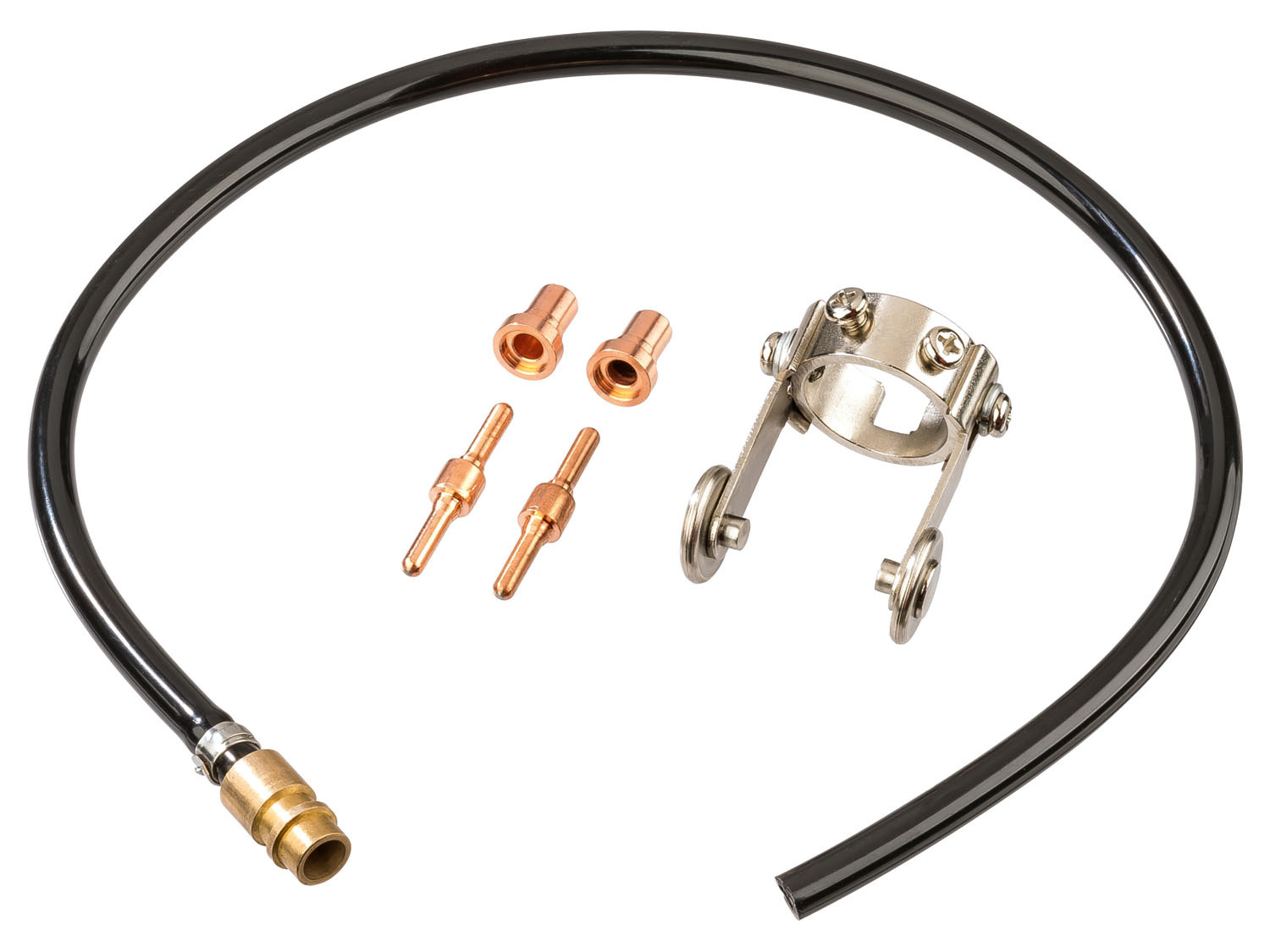- Mellékelt tartozékok: 2 égő (1 előre összeszerelt), 2 elektróda (1 előre összeszerelt), 1 kerékvezető, sűrített levegő tömlő gyorscsatlakozóval, használati útmutató
