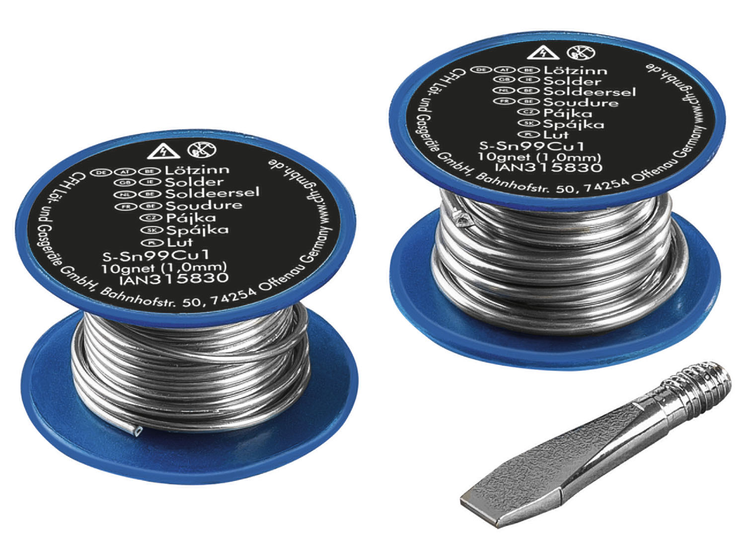 - Mellékelt tartozékok: 1 x cserélhető hegy (lapos forma), 2 x 5g forrasztóorsó (vastagság 1,5 mm/1,0 mm)