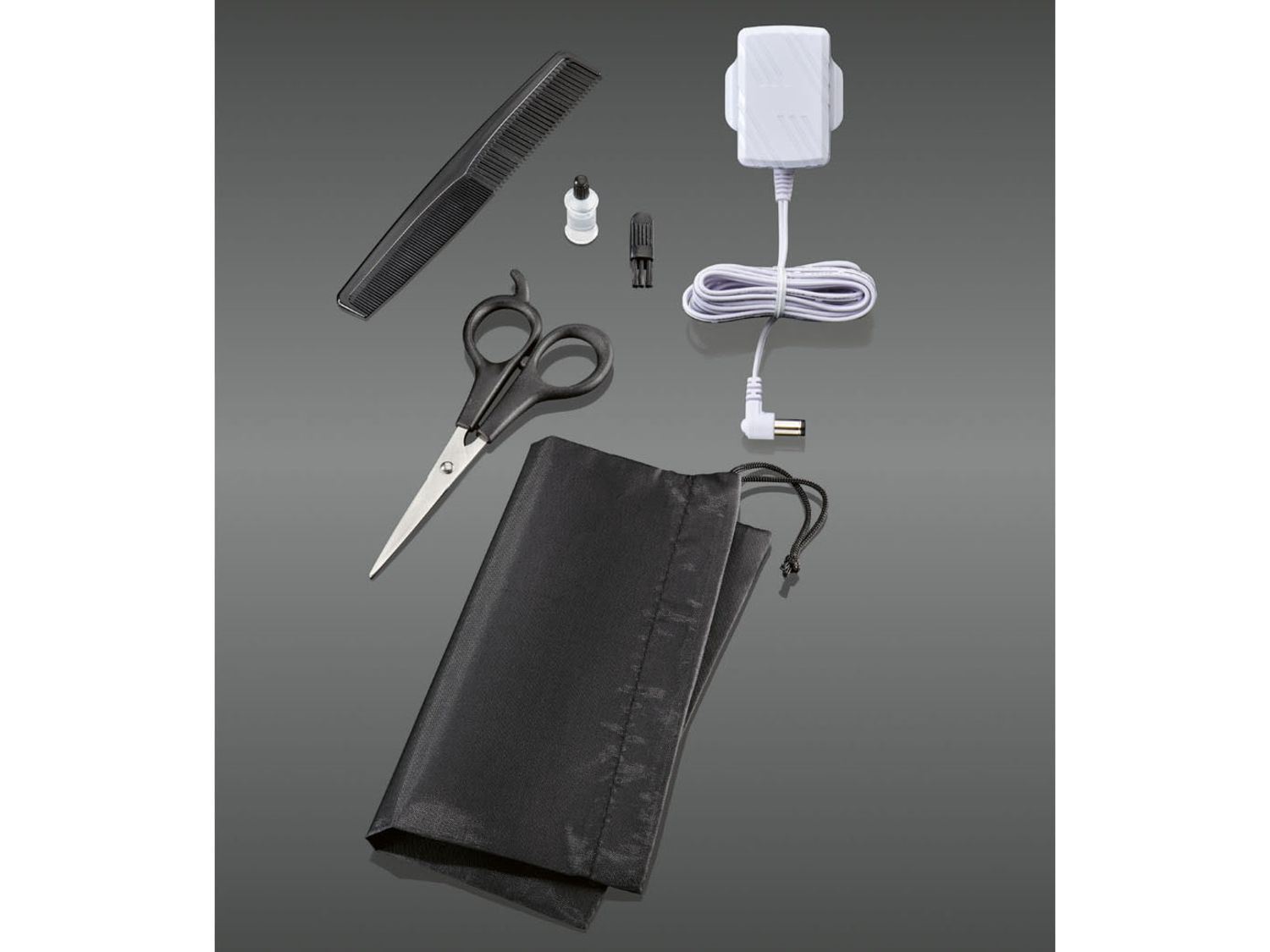 Tartalmazza az ollót, a fésűt, a pengeolajat, a hálózati adaptert, a tisztítókefét és a tokot